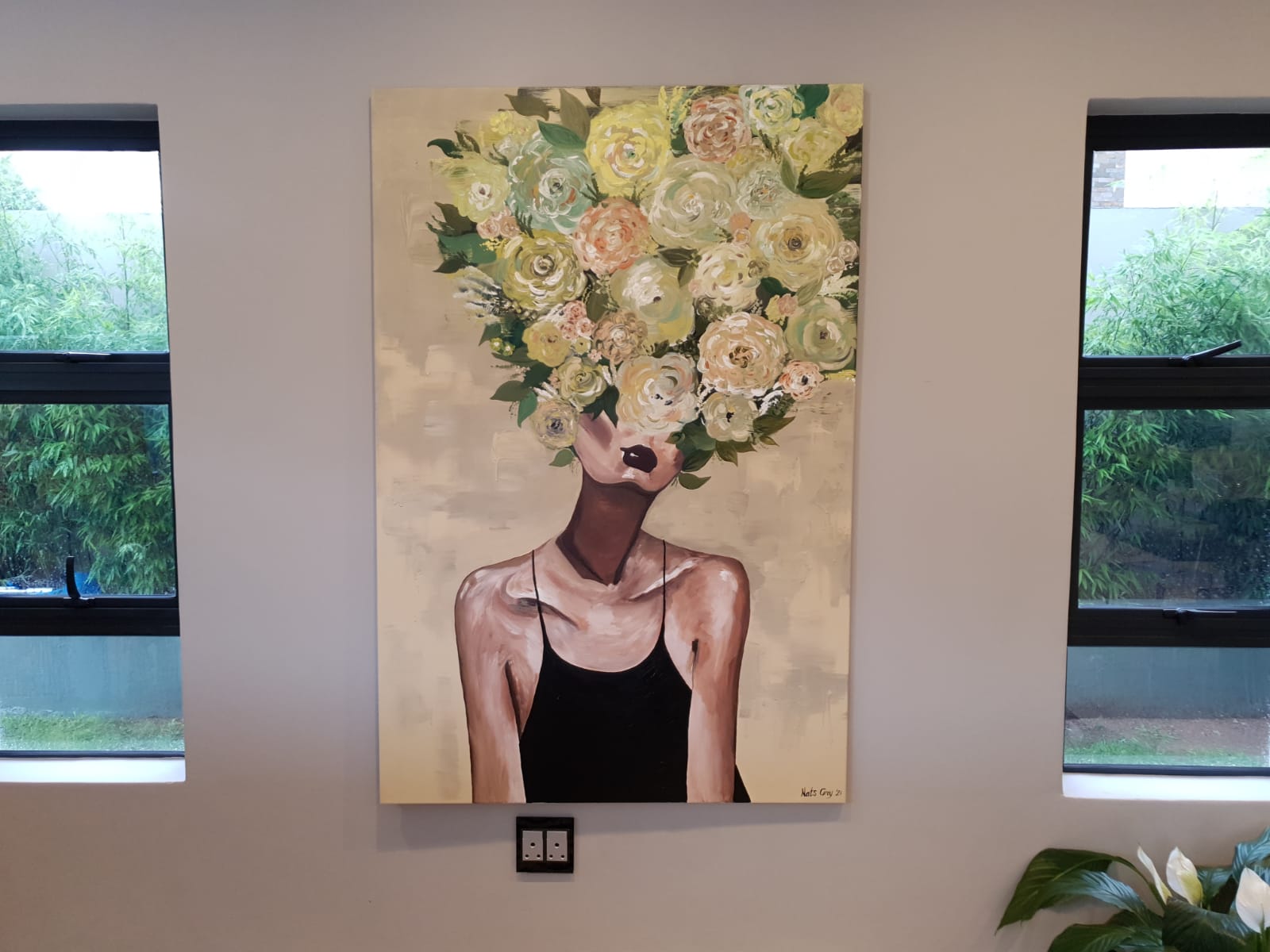 “Her Season To Bloom” is a painting done with acrylic on canvas by Natalie Grey. It is a painting which represents the beauty of a women’s mind. The backround is painted a soft, luxurious gold which adds glamour but ever so subtly.